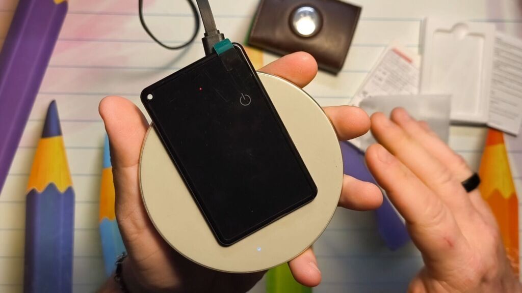 Η κάρτα έχει πάχος μόνο όσο δύο στοιβαγμένες πιστωτικές κάρτες (84 x 54 x 3 mm, βάρος 16 γραμμάρια), κάτι που είναι πραγματικά εκπληκτικό αν σκεφτεί κανείς τι μπορεί να κάνει και, πάνω απ' όλα, την τεχνολογία που ενσωματώνει. Διαθέτει κουμπί ενεργοποίησης/απενεργοποίησης, μια μικρή λυχνία LED για την κατάσταση δραστηριότητας και, το πιο σημαντικό, ασύρματη φόρτιση. Αυτό είναι το πραγματικό στολίδι του προϊόντος: σε σύγκριση με ένα παραδοσιακό AirTag, το οποίο χρησιμοποιεί μπαταρία CR2032, η οποία διαρκεί κατά μέσο όρο δύο χρόνια αλλά εξακολουθεί να είναι δύσκολο να βρεθεί σε συγκεκριμένες καταστάσεις, η κάρτα παρακολούθησης LOSHALL σάς επιτρέπει να φορτίζετε την μπαταρία των 170 mAh μέσω ασύρματης βάσης, η οποία διαρκεί περίπου τρεις μήνες.
