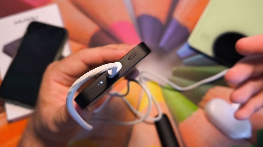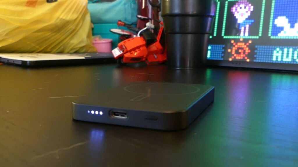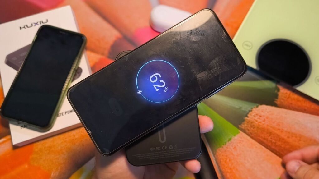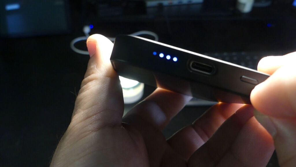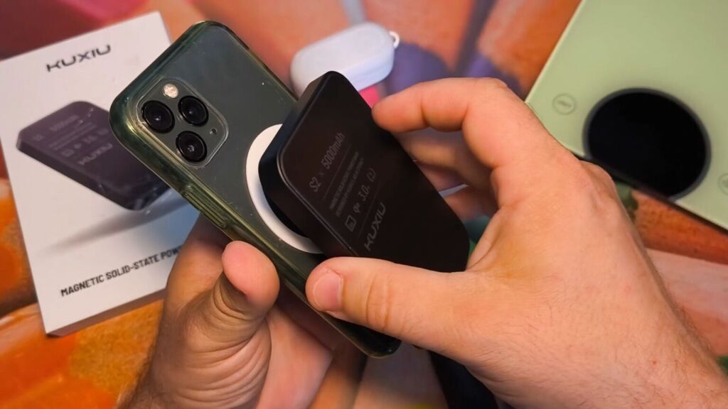Όσον αφορά το μέγεθος και το βάρος, το προϊόν είναι αρκετά ελαφρύ (ζυγίζει 148 γραμμάρια, πάχος 0,99 cm) και μεταξύ των διαθέσιμων χαρακτηριστικών βρίσκουμε ένα μαγνητικό εξάρτημα MagSafe, εξοπλισμένο με 16 μαγνήτες N52 που μπορούν να υποστηρίξουν βάρος έως και 1,6 kg, προσφέροντας μια ασφαλή και ακριβή σύνδεση στο iPhone, ακόμη και με θήκη. Αυτό σημαίνει ότι μπορούμε να συνδέσουμε το power bank στα πιο πρόσφατα iPhone (από τη σειρά 12 και μετά) καθώς και σε συσκευές Android που υποστηρίζουν αυτήν την τεχνολογία, με αυτόματη ανίχνευση, που σημαίνει ότι η συσκευή θα ξεκινήσει να φορτίζει αμέσως χωρίς να χρειάζεται να πατάτε χειροκίνητα κουμπιά, εξασφαλίζοντας μια πιο βολική και ταχύτερη εμπειρία φόρτισης. Φυσικά, αν έχετε ένα smartphone με ασύρματη φόρτιση και μια θήκη MagSafe, θα λειτουργήσει επίσης. Εγώ ο ίδιος δοκίμασα το KUXIU S2 με ένα iPhone 11 Pro και Motorola Edge 30 Neo. Ωστόσο, δεν διαθέτει ενσωμάτωση με το widget μπαταρίας iOS, οπότε για να κατανοήσουμε το υπόλοιπο επίπεδο φόρτισης θα πρέπει να βασιστούμε σε τέσσερα μικρά LED στο κάτω μέρος.
